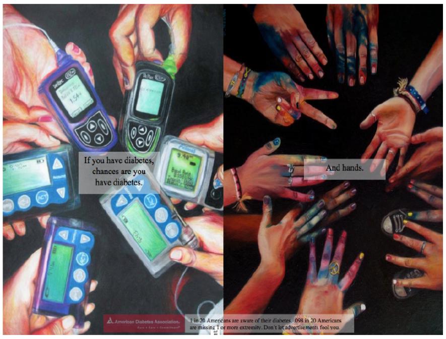 This project by Savannah Johnson (Block 2 2012) critiques constructions of diabetes by the American Diabetes Association. Click here to read “The Synonymy of Disease and Sick: A Critique of the American Diabetes Association,” an article Savannah developed from this project that was published in The Feminist Wire‘s Disability Forum.